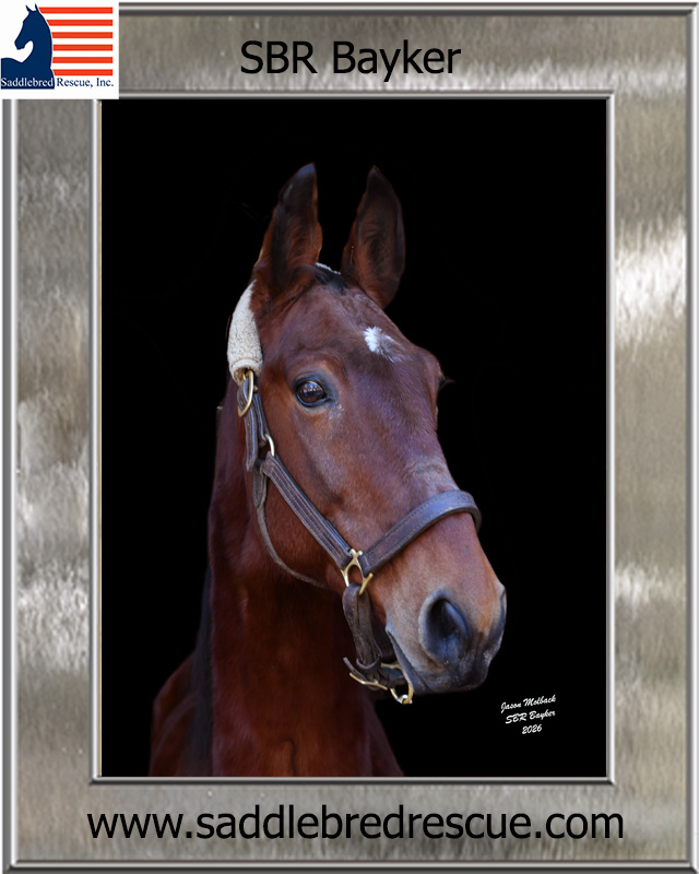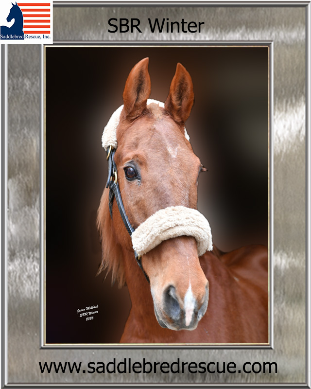 COMMENTS: This horse came in skinny but is putting on weight nicely. He has probably never been to saddlebred school as he does not seem to know how to canter and does not stay on the rail. He is a good horse that doesn't do anything bad. He is not at all spooky so he would probably make a good trail horse. He just needs a rider that knows how to guide.